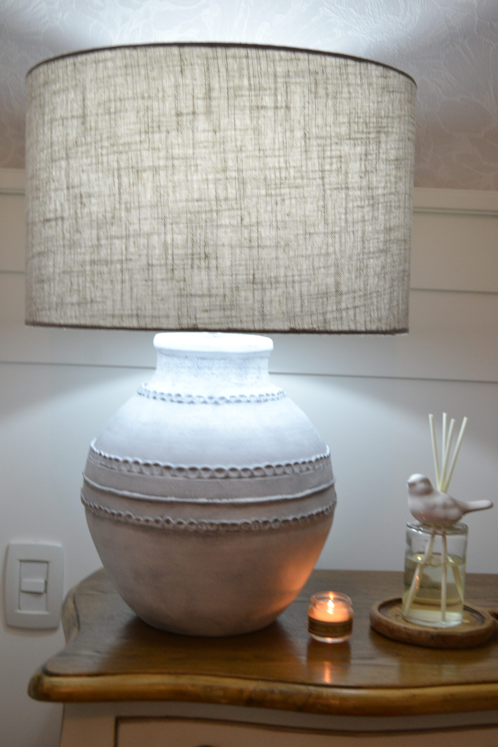 Os Abajures Mileto possuem uma base em cerâmica detalhada com relevos decorativos, adicionando um toque artesanal e elegante. São perfeitos para ambientes que valorizam um design sofisticado e acolhedor.