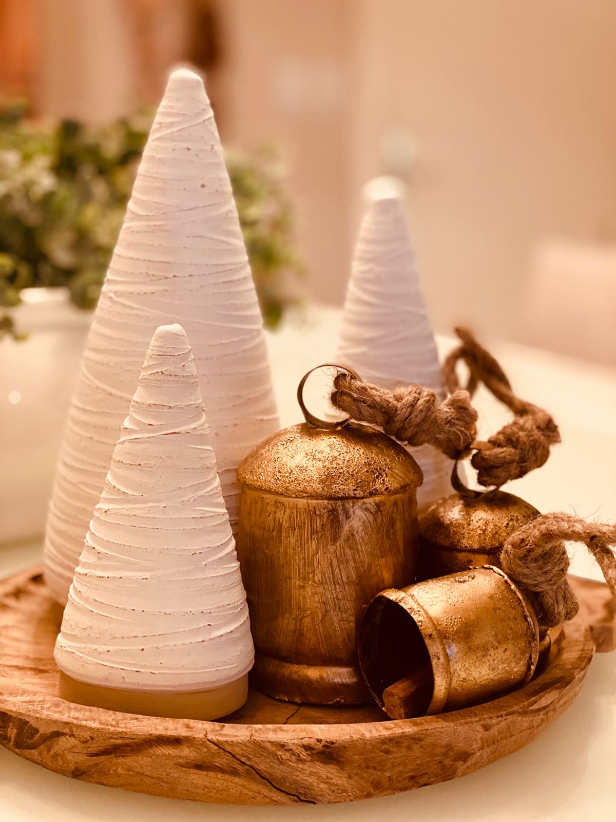Conjunto de pinheiros de cerâmica branca com acabamento em espiral, trazendo um toque minimalista e elegante. Ideais para decoração de Natal ou para compor ambientes com estilo artesanal e sofisticado. Seu design simples e moderno combina com diversos tipos de espaços, oferecendo versatilidade e charme à sua decoração.